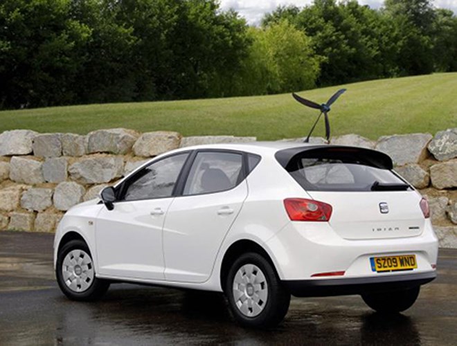 SEAT: Hãng xe Tây Ban Nha có khá nhiều trò, lần này là động cơ tua bin gió với hình ảnh chiếc hatchback gắn thêm cánh quạt phía cuối xe. Khi đó SEAT nói rằng chỉ với động cơ sức gió có thể giúp chiếc xe chạy ở tốc độ 40 km/h