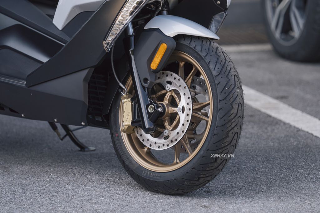 Về trang bị an toàn, C 400 GT cho thấy sự vượt trội rõ rệt. Xe sở hữu phanh đĩa đôi 265 mm phía trước với kẹp phanh bốn piston, phanh sau 265 mm và ABS hai kênh. Đặc biệt, BMW trang bị thêm ABS Pro với Cornering ABS - công nghệ thường thấy trên mô-tô phân khối lớn, cho phép phanh an toàn ngay cả khi xe đang nghiêng vào cua. Hệ thống này phân bổ lực phanh theo góc nghiêng, giảm nguy cơ trượt bánh và hạn chế hiện tượng xe bị dựng đứng khi phanh.