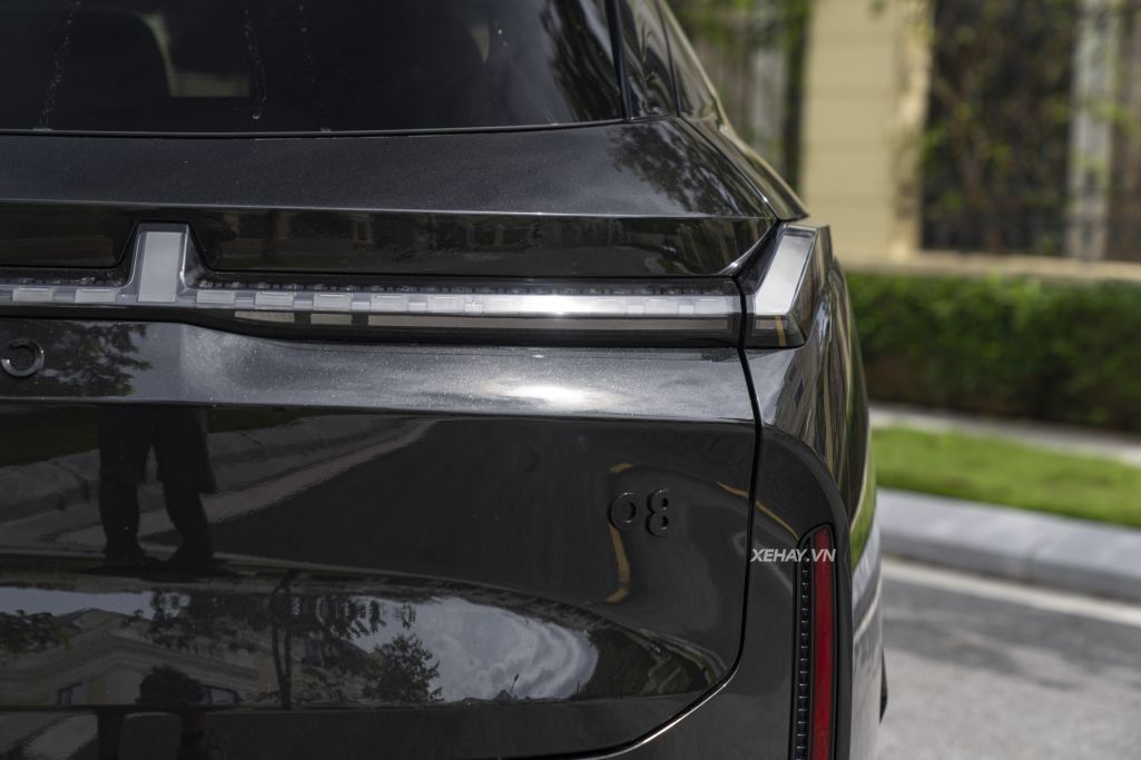 Phía sau xe là cụm đèn hậu LED Crystal liền khối, tay nắm cửa ẩn, gương tràn viền và cửa không khung góp phần hoàn thiện tổng thể liền lạc, đậm chất tương lai.
