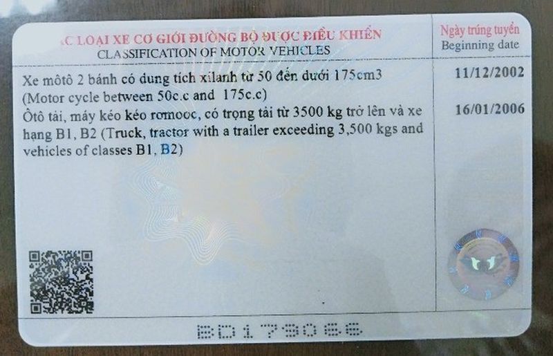 Việc in mã QR trên mặt sau của GPLX được thực hiện từ 00h00 ngày 1/6/2020, GPLX in sau thời điểm trên không có mã hai chiều là GPLX không hợp lệ.