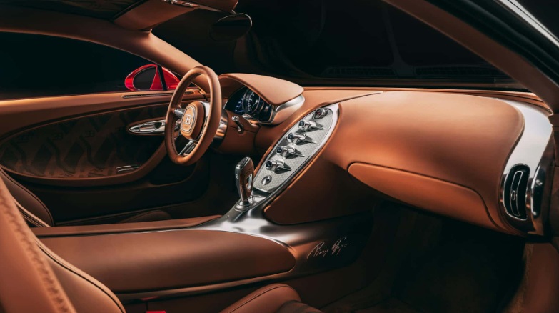 Bên trong cabin, Bugatti mang trở lại vô-lăng tròn lấy cảm hứng trực tiếp từ Veyron đời đầu. Bảng điều khiển trung tâm được gia công từ nhôm nguyên khối, nhấn mạnh yếu tố thủ công tinh xảo. Đáng chú ý nhất là chiếc đồng hồ Audemars Piguet Royal Oak Tourbillon đường kính 41 mm được đặt trang trọng trên táp-lô, thể hiện sự giao thoa giữa nghệ thuật chế tác xe và đồng hồ cao cấp.