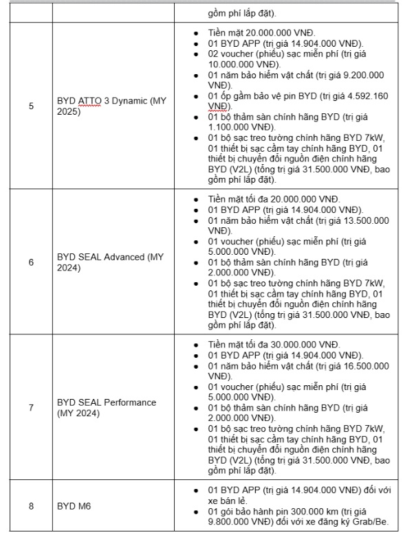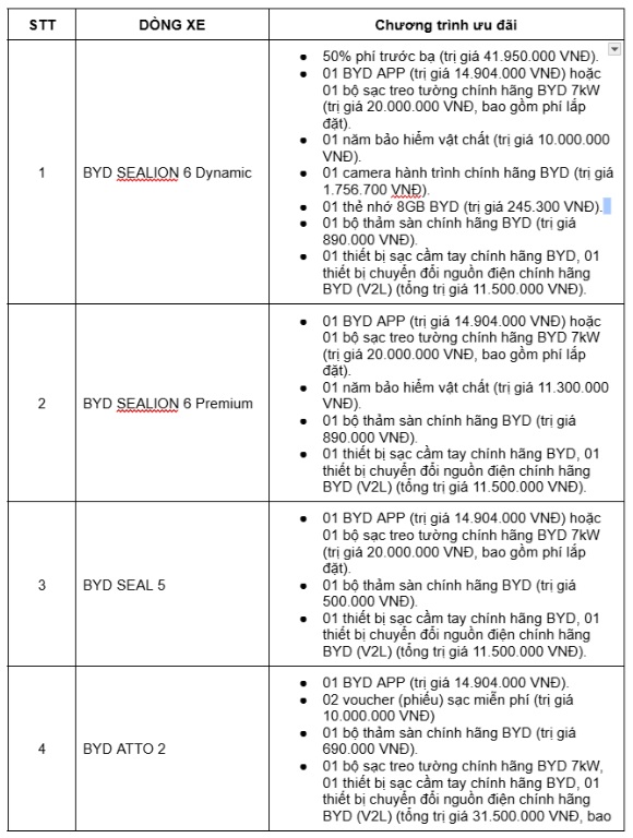 Danh mục áp dụng ưu đãi trải rộng trên 9 mẫu xe ở nhiều phân khúc, từ xe điện đô thị, sedan DM-i Super Hybrid, SUV gia đình đến các dòng xe cao cấp, qua đó đáp ứng đa dạng nhu cầu sử dụng của khách hàng cá nhân lẫn khách hàng kinh doanh dịch vụ.