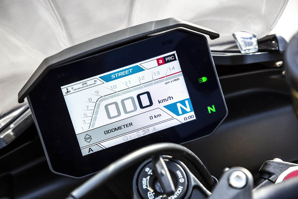 Trang bị đồng hồ thông số dạng màn hình TFT cũng đã được bổ sung giao diện để có thể hiển thị được nhiều thông tin và chức năng tuỳ chỉnh hơn.