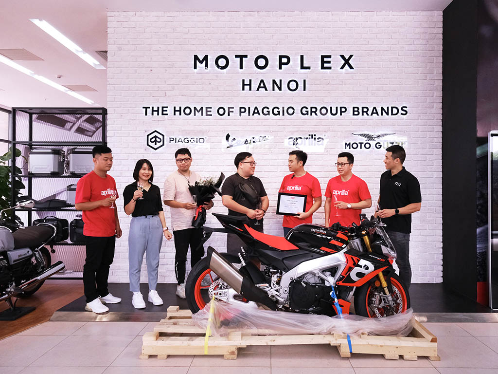 Sáng 22/9/2022 tại MotoPlex Hà Nội, chiếc mô tô Hypernaked Aprilia Tuono V4 đầu tiên của Việt Nam đã được chính tay khách hàng "khui thùng". Xe được trang bị động cơ V4 1.077cc công suất 175 mã lực, hứa hẹn đem lại hiệu suất vận hành "cực cháy".