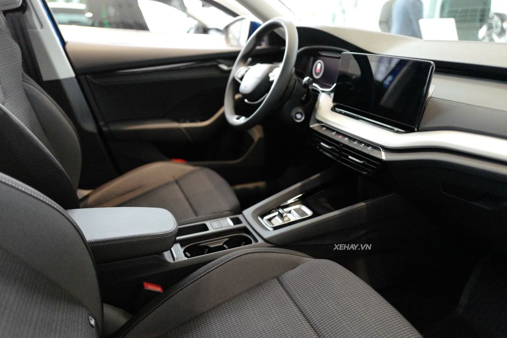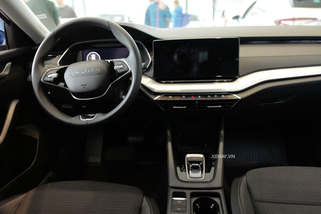 Bên trong, nội thất Octavia được thiết kế theo hướng hiện đại và tiện dụng, với nhiều công nghệ cao cấp như màn hình trung tâm 10 inch (hoặc 13 inch trên bản RS tại VMS 2024) hỗ trợ Apple CarPlay/Android Auto, bảng đồng hồ kỹ thuật số, màn HUD trên kính lái, sạc điện thoại không dây và thậm chí ô gập gọn tích hợp trong cửa xe – chi tiết thể hiện sự tinh tế của thương hiệu Séc.