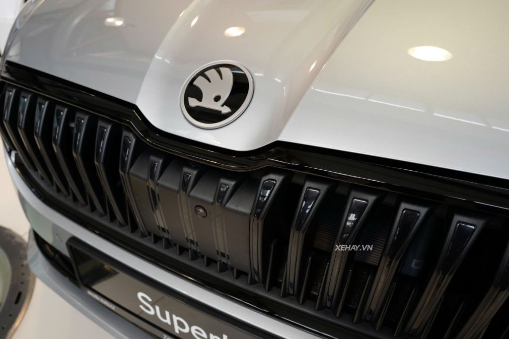 Superb mang phong cách thiết kế trẻ trung nhưng vẫn giữ nét đặc trưng châu Âu. Phần đầu xe gây ấn tượng với lưới tản nhiệt viền chrome dày, họa tiết thanh dọc đặc trưng và cụm đèn LED dạng pha lê tinh xảo đặt sát mép nắp ca-pô, tạo cảm giác cao cấp và hiện đại.