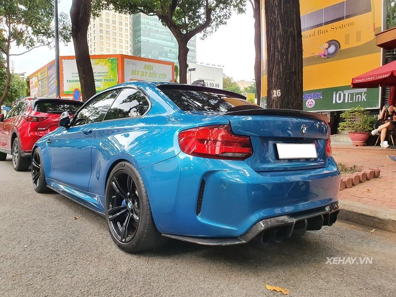 Nổi bật trên nền thân xe xanh mướt là bộ mâm 5 chấu kép sơn đen 19 inch, đi kèm kẹp phanh cùng màu thân xe. Cản sau thiết kế hầm hố cùng hệ thống ống xả kép M-Specific thể thao. Được biết, tại thời điểm về nước, chiếc BMW M2 Coupe này có giá bán khoảng 3 tỷ đồng.
