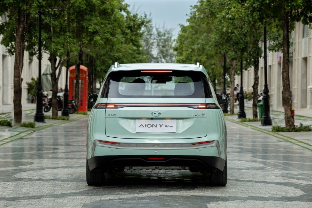 AION Y Plus có kích thước dài x rộng x cao lần lượt là 4.535 x 1.870 x 1.650 mm, với chiều dài cơ sở lên đến 2.750 mm, mang đến không gian để chân rộng 1.020 mm cho người ngồi sau.