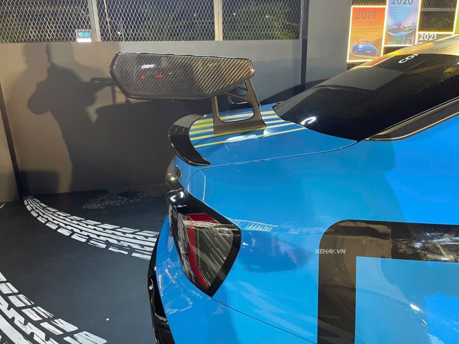 Phía sau xe, cánh gió bằng sợi carbon cỡ lớn không chỉ là điểm nhấn thị giác mà còn tạo lực ép lên tới 163 kg khi xe vận hành ở tốc độ cao. Bộ mâm đa chấu kết hợp hệ thống phanh hiệu suất cao, khẳng định định hướng thể thao rõ nét của mẫu sedan này.