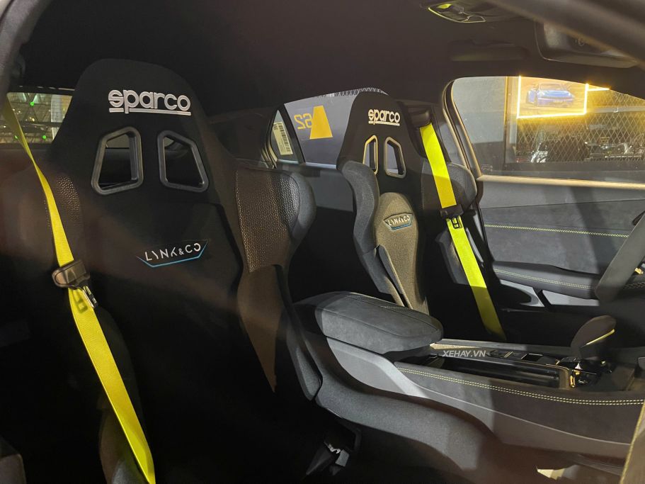 Bên trong khoang lái, Lynk & Co 03+ TCR sở hữu ghế thể thao ôm sát người, bọc da lộn Alcantara cùng chỉ khâu màu xanh tương phản. Trung tâm bảng táp-lô là màn hình cảm ứng lớn tích hợp hệ điều hành thông minh của Lynk & Co, cho phép điều chỉnh các chế độ lái, âm thanh và hệ thống giám sát hiệu năng xe.