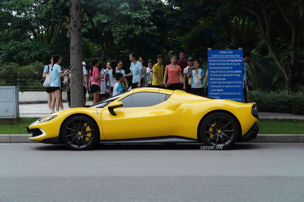 Chiếc siêu xe hybrid mui trần này nổi bật với màu sơn Giallo Modena đặc trưng của Ferrari, kết hợp cùng dải sơn bạc Argento Nurburgring lấy cảm hứng từ những mẫu xe đua danh tiếng trong lịch sử thương hiệu. Đây không chỉ là sự phối màu mang tính biểu tượng, mà còn tôn lên vẻ mạnh mẽ, thể thao cho tổng thể ngoại hình.
