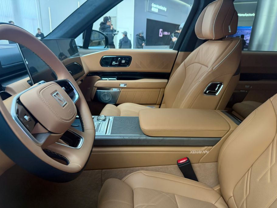 Đáng chú ý, hàng ghế thứ hai có khả năng xoay 180 độ, mang lại cách bố trí linh hoạt tương tự mẫu Lynk & Co 900 từng ra mắt trước đó trong hệ sinh thái Geely. Những chi tiết hoàn thiện khác bao gồm cửa chỉnh điện, các nút bấm đóng/mở cửa riêng biệt và trợ lý giọng nói AI Eva, cho phép điều khiển nhiều chức năng trên xe bằng khẩu lệnh, củng cố hình ảnh một mẫu SUV điện thiên về trải nghiệm sang trọng và công nghệ.