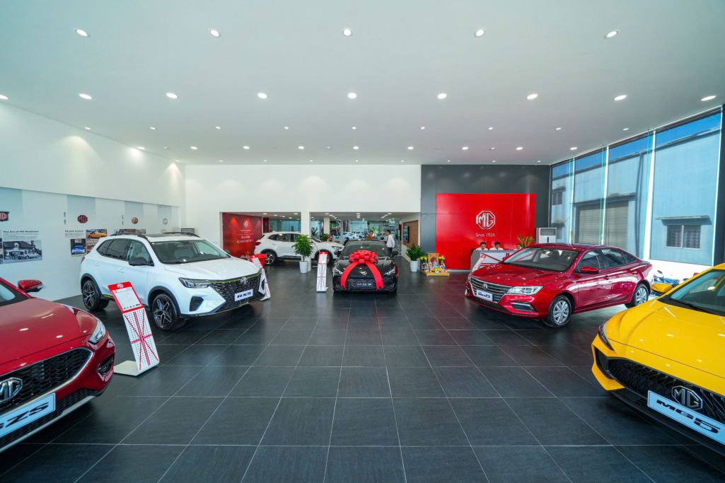 Showroom trưng bày được thiết kế theo không gian mở và cập nhật các mẫu xe mới nhất của MG Việt Nam như: MG EV4 - Mẫu xe điện thân thiện với môi trường, MG7 mẫu xe sedan hạng D mới được ra mắt tại thị trường Việt Nam, MG RX5 - Mẫu SUV tiện nghi, hiện đại, MG ZS, MG HS, MG5…