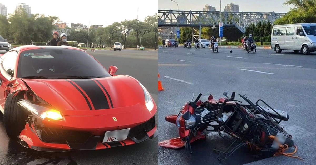 Theo Công An Thành phố Hà Nội cho biết khoảng 5 giờ ngày 31/10 vừa qua, tại đường Lê Quang Đạo, quận Nam Từ Liêm đã xảy ra vụ tai nạn nghiêm trọng giữa xe mang nhãn hiệu Ferrari 488 và một xe máy mang biển kiểm soát 29T1-337.35.