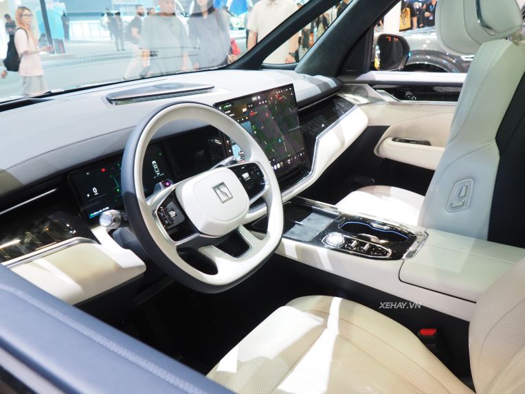 Về mặt ngoại thất, xe vẫn giữ nguyên kiểu dáng hình khối với lưới tản nhiệt mạ chrome đặc trưng. Điểm mới nằm ở cụm đèn hiển thị chế độ tự lái và cảm biến LiDAR được lắp đặt trên nóc xe. Hệ thống hỗ trợ lái thông minh được điều khiển bởi chip NVIDIA DRIVE Thor-U, kết hợp với hơn 70 cấu hình an toàn chủ động và cấu trúc bảo vệ pin chuyên biệt.
