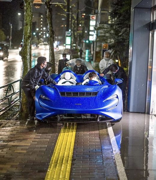 Theo đó, những hình ảnh về 5 người đàn ông vất vả đẩy một chiếc McLaren Elva trong điều kiện trời mưa nặng hạt đã bất ngờ được chia sẻ rộng rãi trên các trang mạng xã hội và đón nhận rất đông đảo sự quan tâm của cộng đồng mạng. Được biết, hình ảnh trên được chụp tại thủ đô Tokyo của Nhật Bản trong một buổi tối mưa gió.