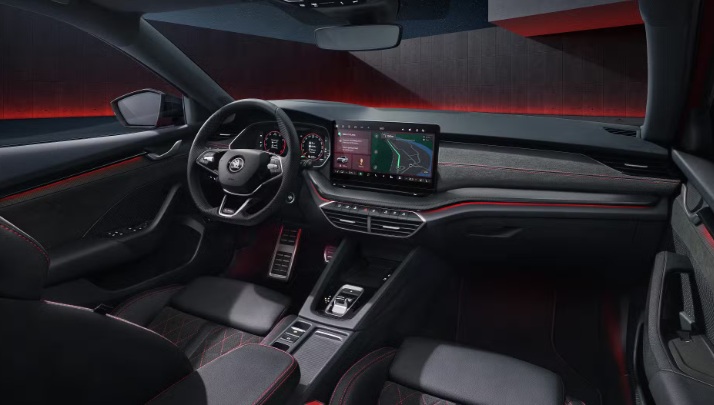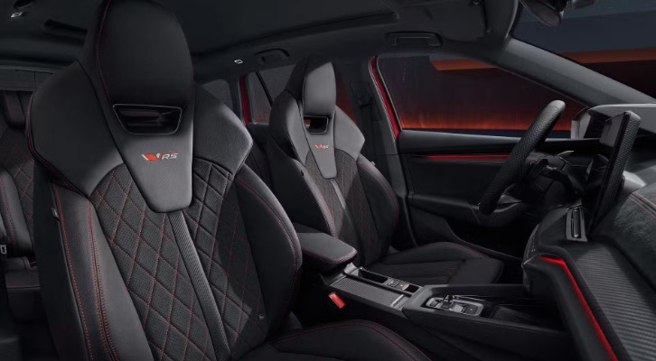 Không rõ khi về Việt Nam xe sẽ có những trang bị gì. Tại thị trường Séc, không gian bên trong của Octavia vRS 2026 được trang bị ghế ngồi bọc da cao cấp. Ghế trước được tích hợp chức năng massage và nhớ vị trí, kết hợp cùng đèn viền nội thất đa sắc, giúp hành khách tận hưởng không khí sang trọng nhưng vẫn đậm chất năng động.