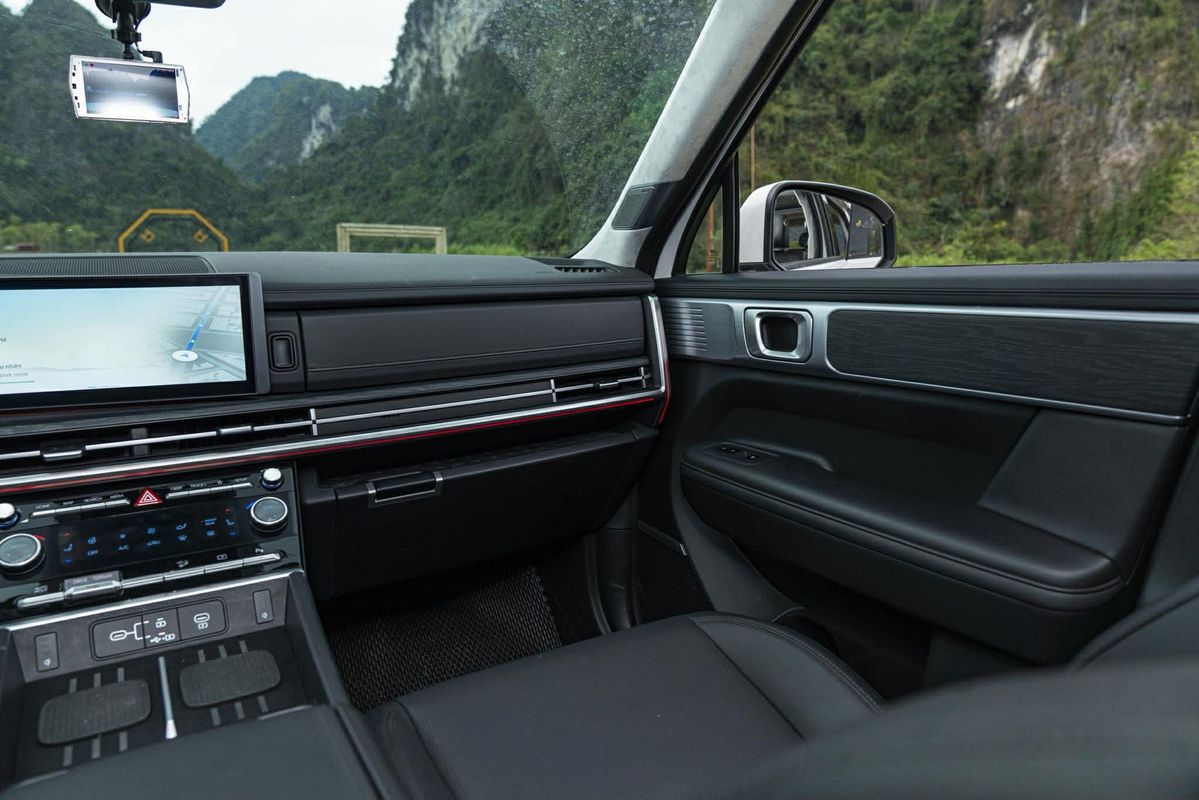Dù có kích thước lớn, Santa Fe không tạo cảm giác nặng nề khi xoay trở trong phố. Hệ thống camera và cảm biến hỗ trợ phát huy hiệu quả khi lùi xe, quay đầu hay len lỏi qua những đoạn đường hẹp - điều rất thường gặp tại các đô thị lớn.