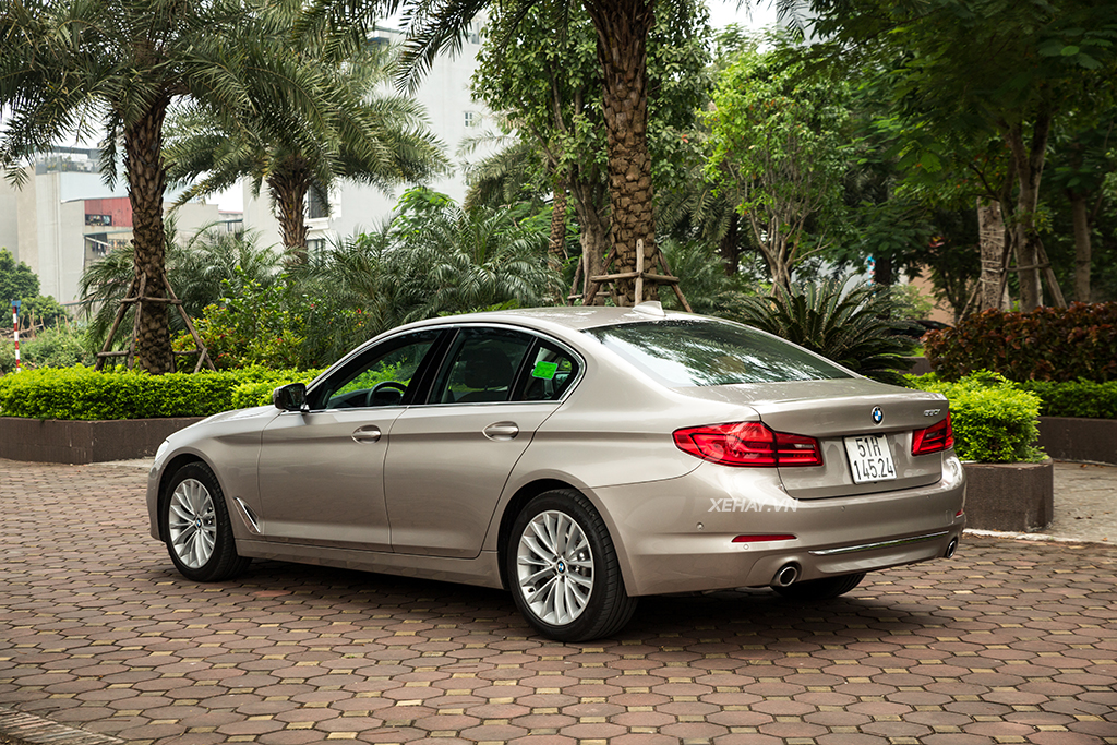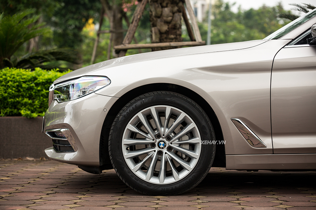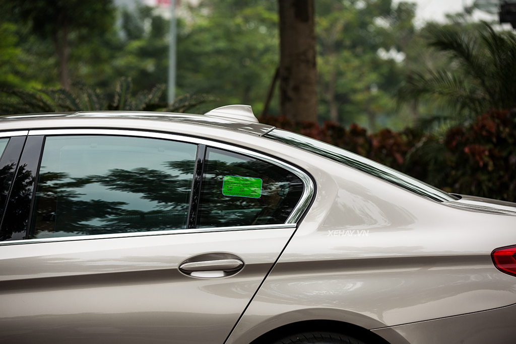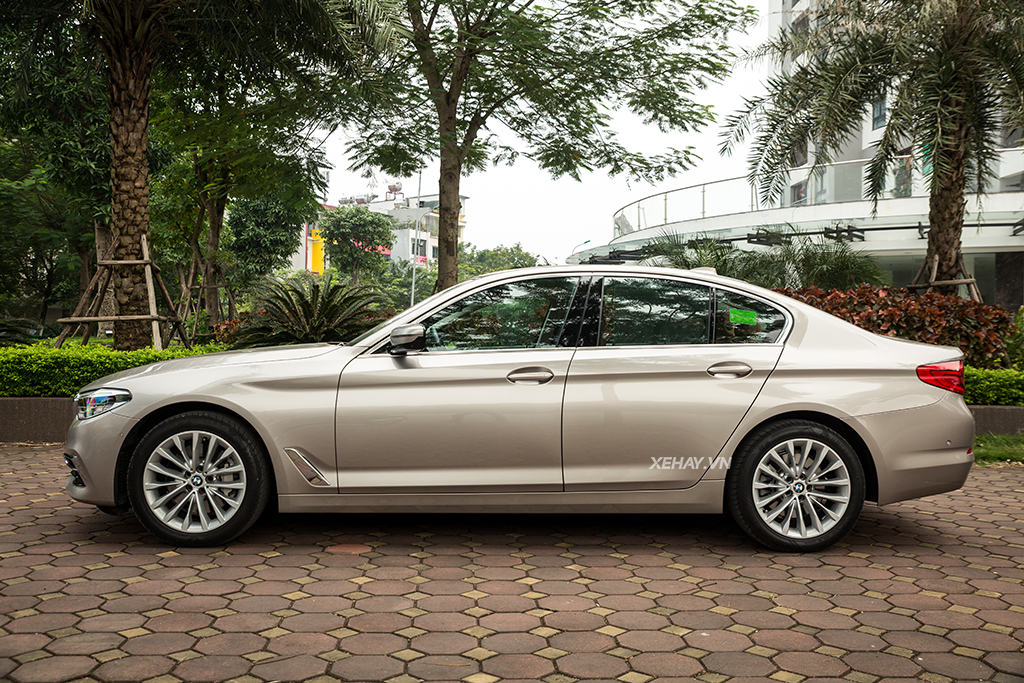 Nhìn sang bên thân xe, chiếc 530i cũng sở hữu ngoại hình đậm chất xe sang với thiết kế đặc trưng của xe dẫn động cầu sau. Khoang cabin được đặt lùi hẳn về phía sau, kết hợp khoảng dash-to-axle cực dài (khoảng cách từ trục bánh trước đến chân kính lái) và khoảng front overhang siêu ngắn (khoảng cách từ mũi xe đến trục bánh trước) tạo ra kiểu dáng vô cùng thể thao và năng động cho chiếc BMW 530i.