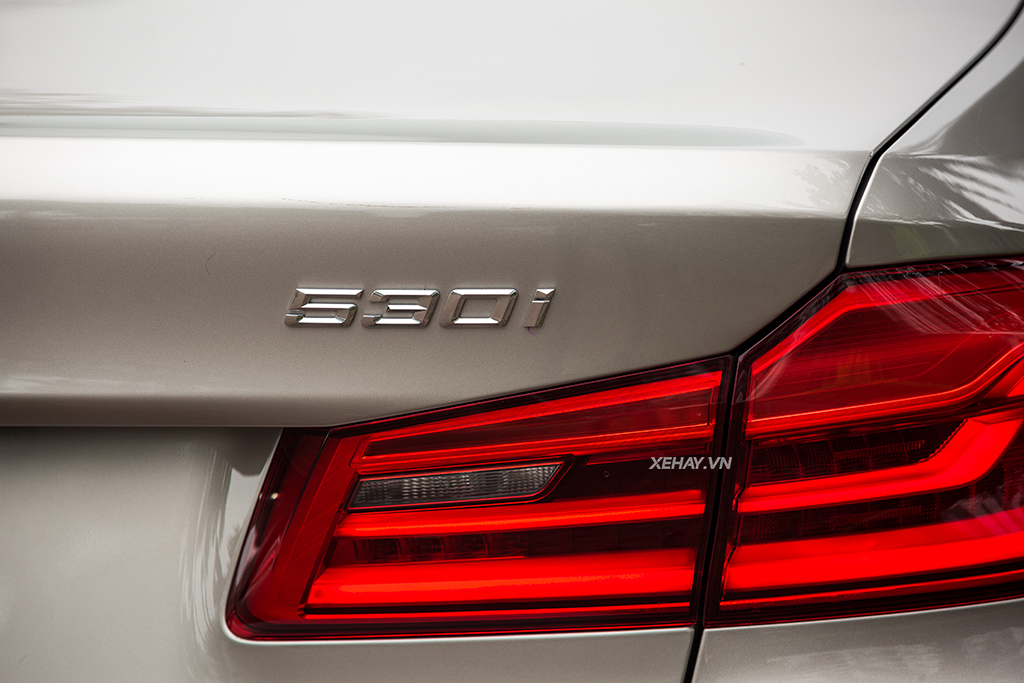 Trong bối cảnh mà “người người làm đèn LED vắt ngang, nhà nhà bắt chước Porsche”, nhìn thấy 2 cụm đèn tách biệt của 530i thực sự khiến tôi thấy hứng khởi và thầm khen ngợi các nhà thiết kế của BMW. Cũng ở thế hệ G30 này thì mọi biến thể của Series 5 đều có ống xả đối xứng 2 bên (các bản thường là 2 ống xả, bản M5 4 “nòng súng”). Điều này khiến những chiếc G30 trông thể thao và đẹp hơn nhiều so với đời F10 trước đó. Một điểm khác biệt nho nhỏ nữa của BMW đối với các hãng xe khác chính là nút mở cốp sau được tích hợp luôn vào logo BMW. Nếu lười bấm nút, bạn chỉ cần đá chân vào khu vực dưới gầm xe.