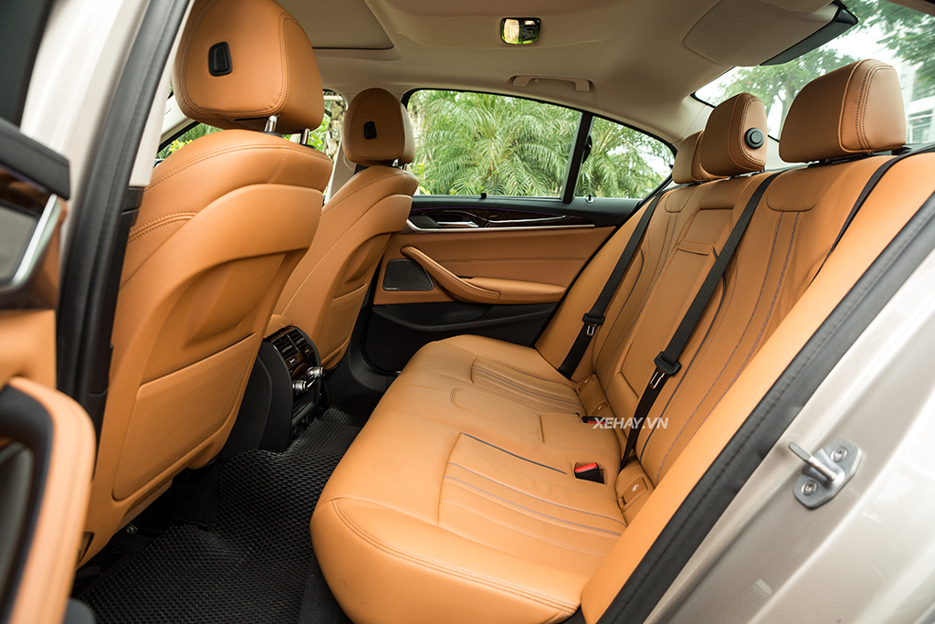 Trần xe được bổ sung vật liệu cách âm tốt hơn, giúp cách âm khỏi tiếng gió rít khi chạy tốc độ cao trên cao tốc. Đây là một vị trí trọng yếu trong việc cách âm vì trần xe nằm ngay sát đầu của hành khách trên xe nên nếu trần xe cách âm không tốt thì chúng ta sẽ dễ dàng nghe thấy tiếng ồn. Ngay cả những hộc chứa đồ ở thành cửa cũng được thiết kế lại để đựng vừa các chai nước thể tích 1 lít. Tất nhiên, những trang bị như hiển thị kính lái, rèm chỉnh điện, đèn viền nội thất, điều hòa tự động 4 vùng có ion hóa, dàn loa Harman Kardon 600W hay hệ thống nước hoa Ambient Air đều là những trang bị có sẵn trên BMW 530i.