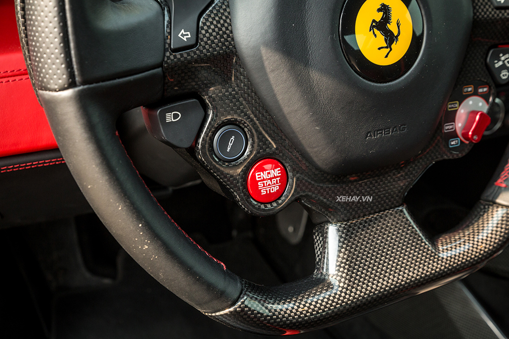 Bước vào khoang nội thất, thực sự thì đối với người mê xe thì khoang cabin 488 GTB chính là hiện thân của thiên đường. Đó là chiếc vô lăng được lấy cảm hứng từ xe đua với rất nhiều nút bấm tích hợp, là đồng hồ vòng tua máy vàng chói, là rất nhiều chi tiết bằng sợi các-bon và 2 chiếc ghế tuyệt đẹp được lấy cảm hứng từ mẫu Ferrari Daytona. Tuy vẫn còn một vài chỗ, vài nút bấm bằng nhựa nhìn khá rẻ tiền nhưng chắc chắn bạn không muốn xem tôi làm văn miêu tả. Bạn đang muốn trải nghiệm siêu xe này cùng tôi, đúng không?