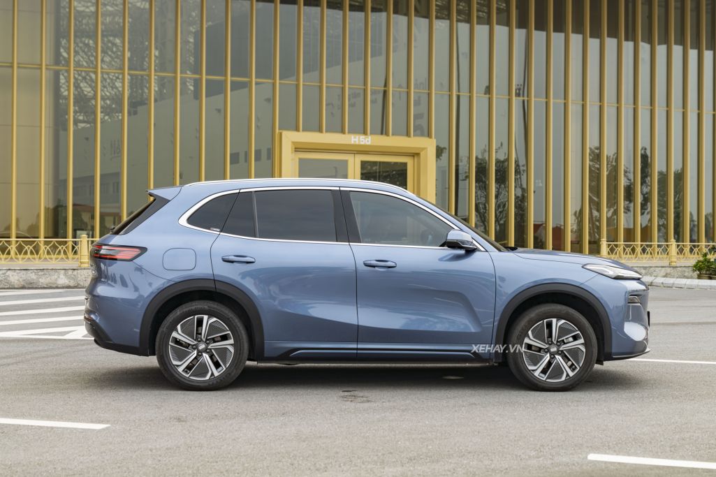 Điểm đáng chú ý nằm ở kích thước. Với chiều dài 4.725 mm và trục cơ sở 2.755 mm, EX5 EM-i lớn hơn phần lớn đối thủ cùng phân khúc như Mazda CX-5 hay Honda CR-V. Trong thực tế sử dụng, sự “nhỉnh” này không chỉ nằm trên thông số, mà thể hiện rõ khi ngồi hàng ghế sau hoặc chứa đồ cho những chuyến đi dài.