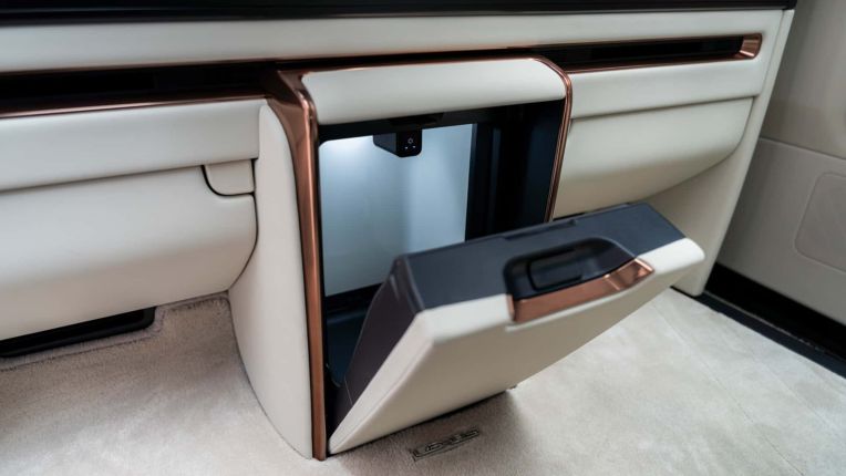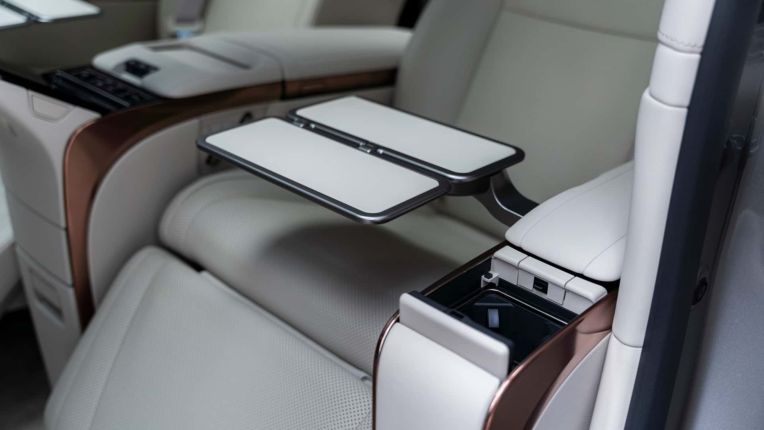 Bên cạnh đó, xe còn được trang bị những chi tiết tinh tế như hai chiếc ô chế tác từ gỗ và sợi carbon, cùng hệ thống lọc không khí Panasonic Nanoe-X giúp loại bỏ các tác nhân gây dị ứng.