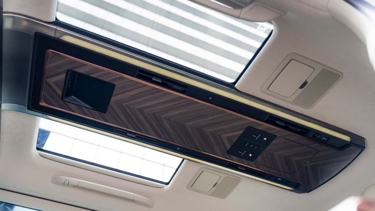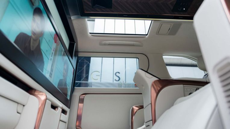 Điểm giá trị nhất của Lexus LM nằm ở vách ngăn kín biệt lập giữa khoang lái và khoang hành khách. Vách ngăn này tích hợp một màn hình rộng 48 inch và cửa sổ kính có thể điều chỉnh độ mờ chỉ bằng một nút bấm, tạo ra một không gian làm việc hoặc nghỉ ngơi hoàn toàn riêng tư.