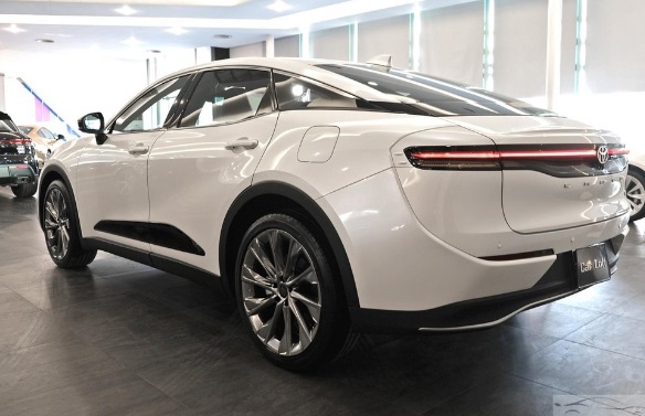 Toyota Crown Crossover sở hữu mái dốc về phía sau, đường vai chảy và cánh gió hậu kín đáo. Ngoài ra, cốp xe cũng là một điểm gây tranh cãi. Cốp ngăn với cabin bằng vách nửa vời. Điều này khiến bộ phận này nửa như cốp rời của sedan nửa như cốp liền của crossover.