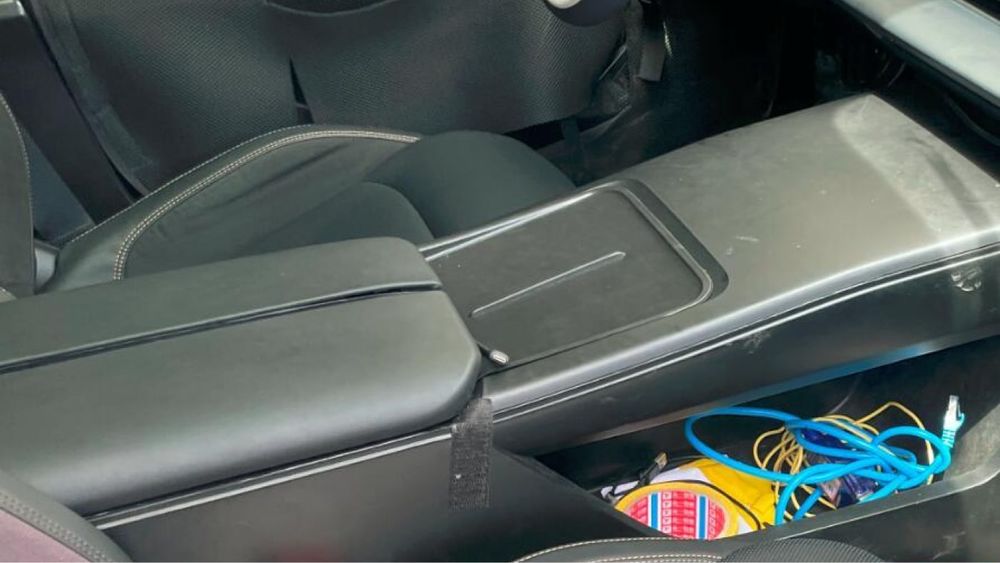 Khu vực bệ tỳ tay được trang bị hai đế sạc điện thoại không dây và ngăn chứa đồ cỡ lớn. Do các tính năng trên xe đều được điều khiển thông qua màn hình nên khu vực này đã được lược bỏ đi hoàn toàn hệ thống nút bấm.