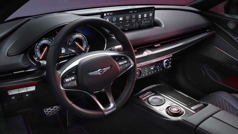 Đối với nội thất, cabin của G80 Sport mới được hoàn thiện trong da bọc màu đen hoặc đỏ, kèm chỉ khâu màu xám hoặc đỏ và nhiều chi tiết trang trí như nhôm, sợi carbon hoặc dệt kim cương. Ngoài ra, xe còn có vô lăng 3 chấu độc đáo, sạc không dây cho smartphone ở hàng ghế sau, ghế Ergo Motion Seat cho hành khách phía trước (trước đây tính năng này cho có trên ghế lái), cùng hệ thống kiểm soát tư thế thông minh để hỗ trợ thêm phần hông và lưng người ngồi, rất hữu ích cho những chuyến đi xa.