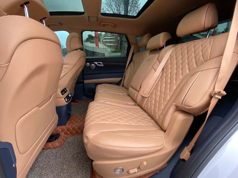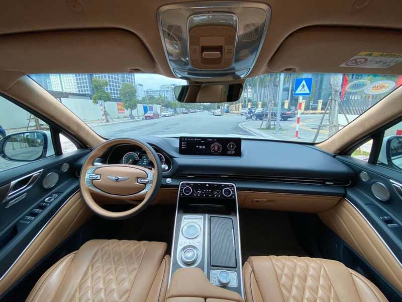 Bên trong khoang cabin, Genesis GV80 2020 được rao bán có nội thất bọc da Nappa màu nâu cao cấp, kết hợp các bề mặt ốp gỗ đắt tiền và nhiều trang bị tiên tiến như màn hình trung tâm siêu lớn với kích thước 14,5 inch, hệ thống âm thanh Lexicon 21 loa và 2 cửa sổ trời giúp không gian xe thêm thoáng đãng.