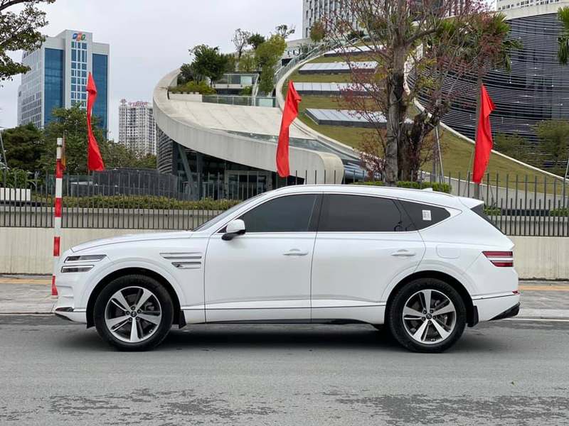 Chiếc GV80 này có ngoại thất màu trắng, đi kèm bộ mâm 5 chấu 22 inch đẹp mắt. Về kích thước, xe sở hữu số đo DxRxC tương ứng 4.945 x 1.975 x 1.715 mm, chiều dài cơ sở đạt 2.955 mm. Đối thủ của BMW X5 gây ấn tượng bởi lưới tản nhiệt hình kim cương cỡ lớn và hệ thống đèn chiếu sáng hiện đại.