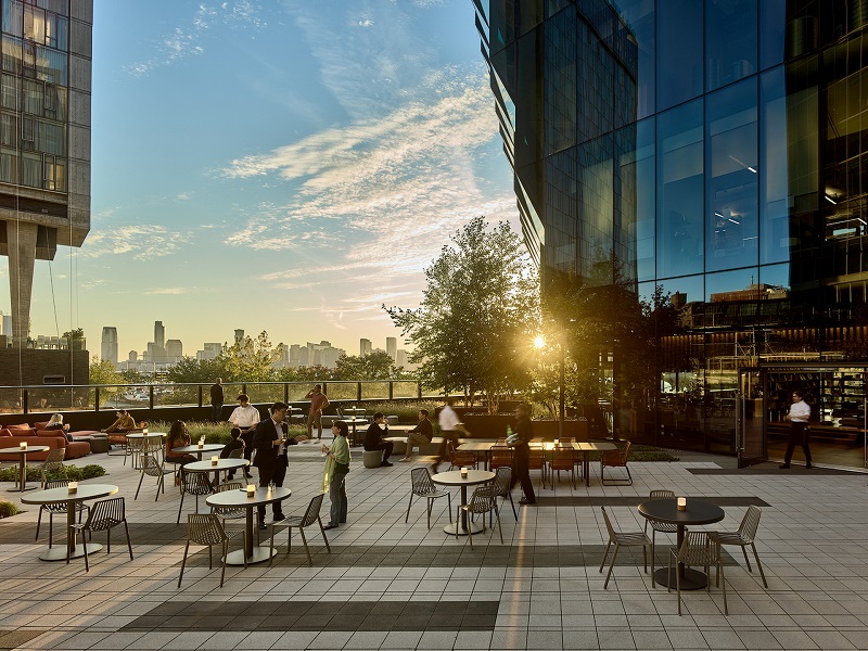 Khu vườn trên sân thượng Genesis House có diện tích 882 mét vuông mang đến cho du khách một tầm nhìn bao quát đến High Line - công viên đường sắt độc đáo mang tính biểu tượng của thành phố New York. Bao quanh toàn bộ khuôn viên khu vườn là phong cảnh truyền thống của Hàn Quốc với cát trắng và sỏi được tổ điểm bởi cây xanh.