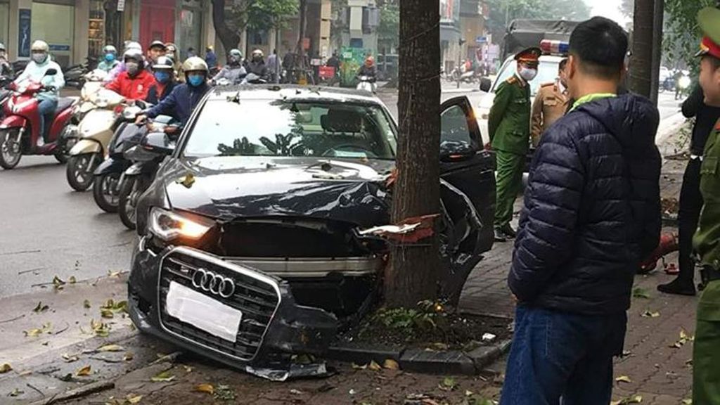 Theo những nhân chứng có mặt tại hiện trường chia sẻ, nguyên nhân dẫn tới vụ tai nạn là do chiếc Audi A6 khi đang lưu thông trên đường với tốc độ cao đã bất ngờ mất lái và đâm trực diện vào một trụ nước trên vỉa hè. Sau đó, chiếc xe sang chỉ chịu dừng lại khi tiếp tục đâm mạnh vào gốc cây gần đó. Vụ việc xảy ra quá nhanh khiến không ít người dân xung quanh hoảng sợ.