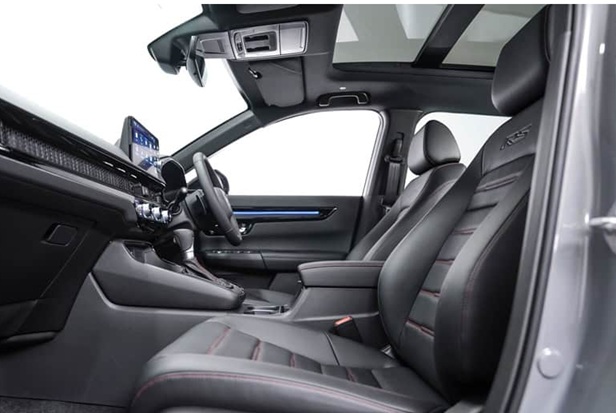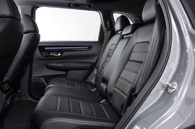 Bên cạnh các biến thể thông thường, Honda cũng giới thiệu CR-V e:HEV RS - bản thể thao cao cấp nhất trong dòng sản phẩm. Phiên bản này dễ nhận diện với cản trước - sau sơn đen bóng, tay nắm cửa và ốp hông đồng màu thân xe, cùng logo RS thêu trên ghế. Nội thất phối màu tối, nhấn mạnh chất thể thao nhưng vẫn tinh tế.