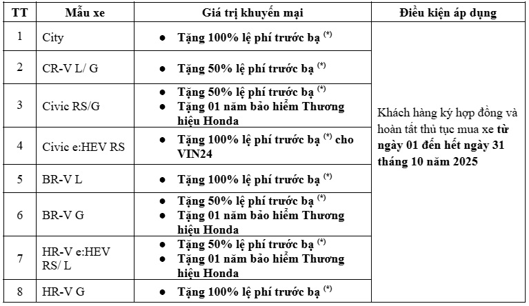 Tháng 10 này, Honda Việt Nam (HVN) phối hợp cùng hệ thống Nhà Phân phối triển khai tháng tri ân với khuyến mại cực lớn dành cho các mẫu xe ô tô Honda.