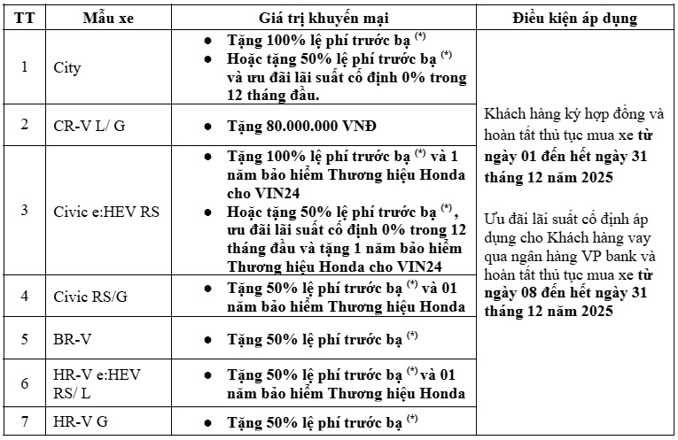 Tháng 12 này, Honda Việt Nam (HVN) phối hợp cùng hệ thống Nhà Phân phối triển khai tháng tri ân với khuyến mại cực lớn dành cho khách hàng mua các mẫu xe ô tô Honda.