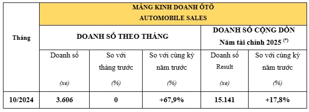 Công ty Honda Việt Nam (HVN) thông báo doanh số bán lẻ mảng kinh doanh xe máy & ô tô trong tháng 10/2024.