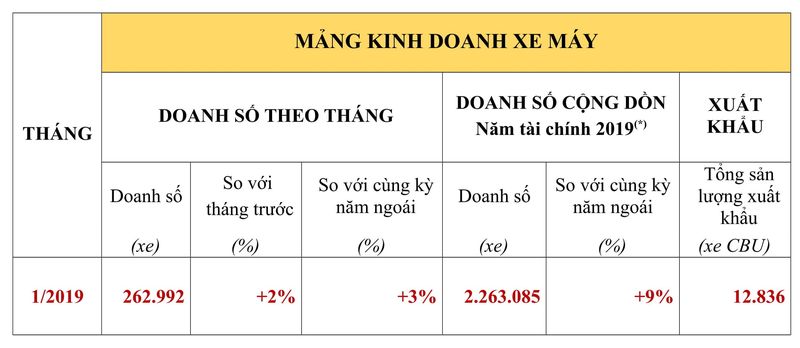 Vừa qua, Honda Việt Nam (HVN) đã công bố doanh số bán lẻ 2 mảng kinh doanh ô tô và xe máy trong tháng 01/2019. Với những kết quả khả quan trong tháng đầu xuân mới, Honda Việt Nam tự tin vượt chỉ tiêu đề xuất trong năm tài chính 2019 mà lãnh đạo cấp cao công ty đã đề ra.