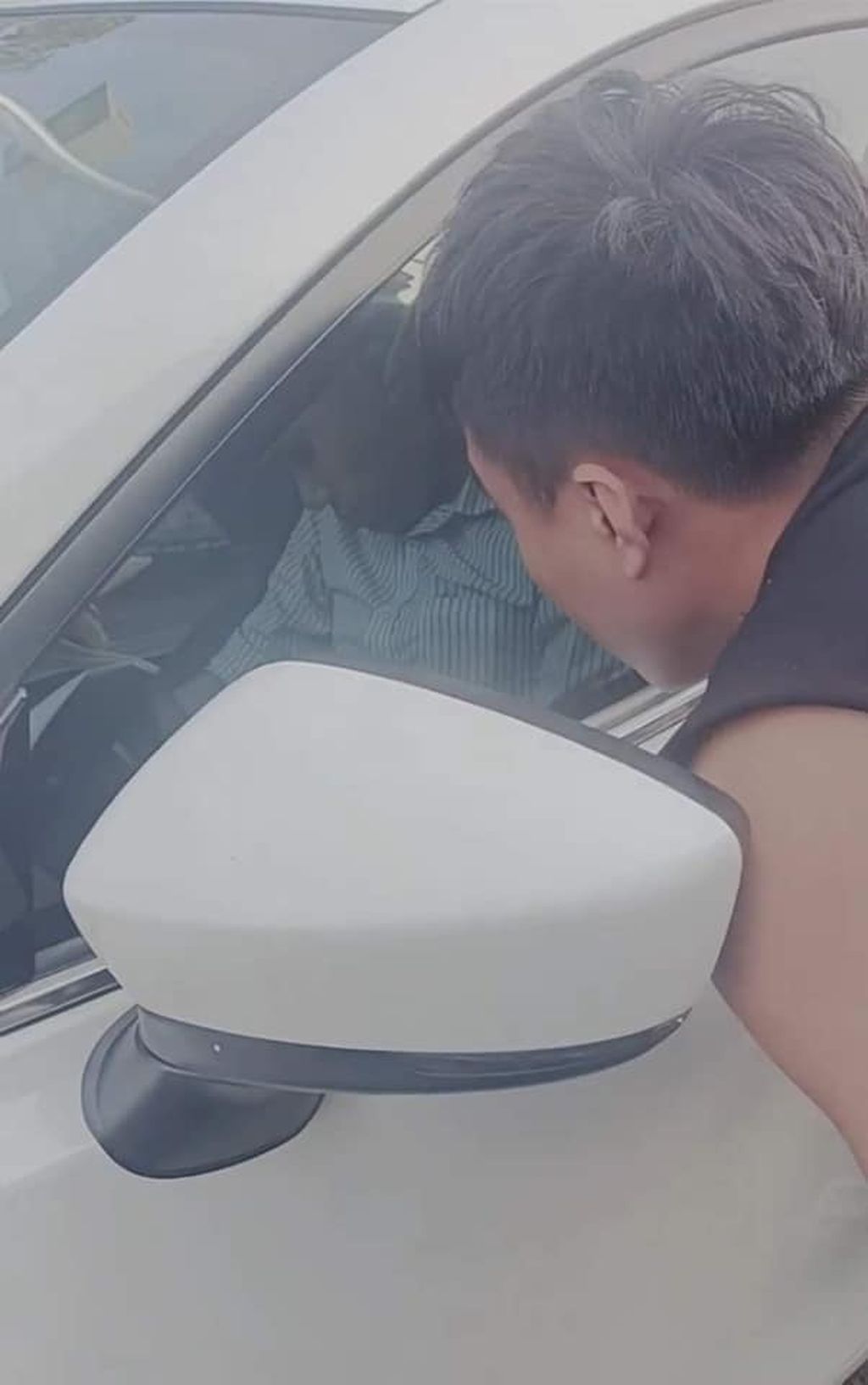 Với kiểu dáng ngủ “bất ổn”, nam tài xế đã đi tong cái cửa kính xe.