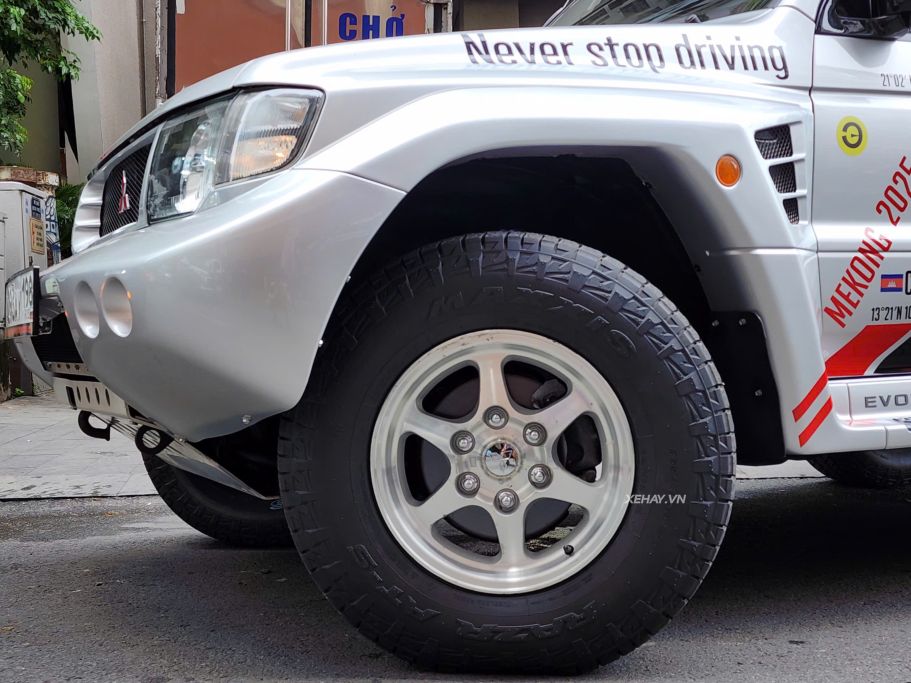 Bên dưới nắp ca-pô, Pajero Evolution sở hữu động cơ V6 3.5L cho công suất 276 mã lực và mô-men xoắn 347 Nm, kết hợp cùng hệ thống vi sai chống trượt Torsen ở cả trước và sau. Hệ dẫn động hai cầu toàn thời gian giúp xe duy trì độ bám tối đa và khả năng vượt địa hình xuất sắc.