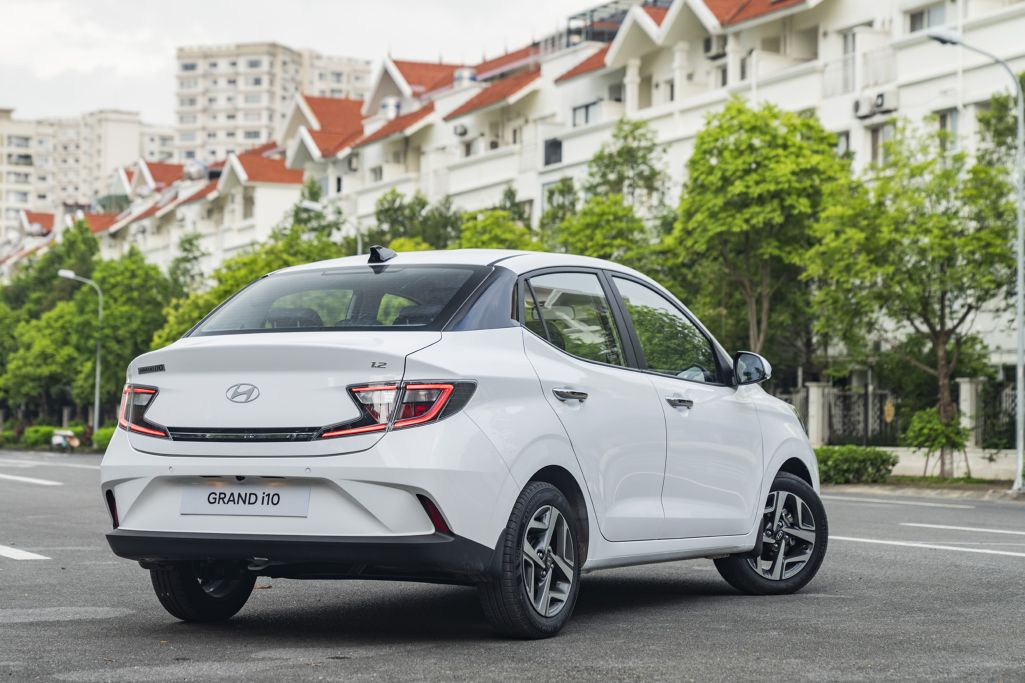Các chi tiết khác thể hiện sự tinh tế trong thiết kế của New Grand i10 như tay nắm cửa mạ Crom, đèn xi-nhan tích hợp cùng gương chiếu hậu, đèn phanh trên cao dạng LED,… tạo nên một ngoại hình mang phong cách châu Âu hiện đại.
