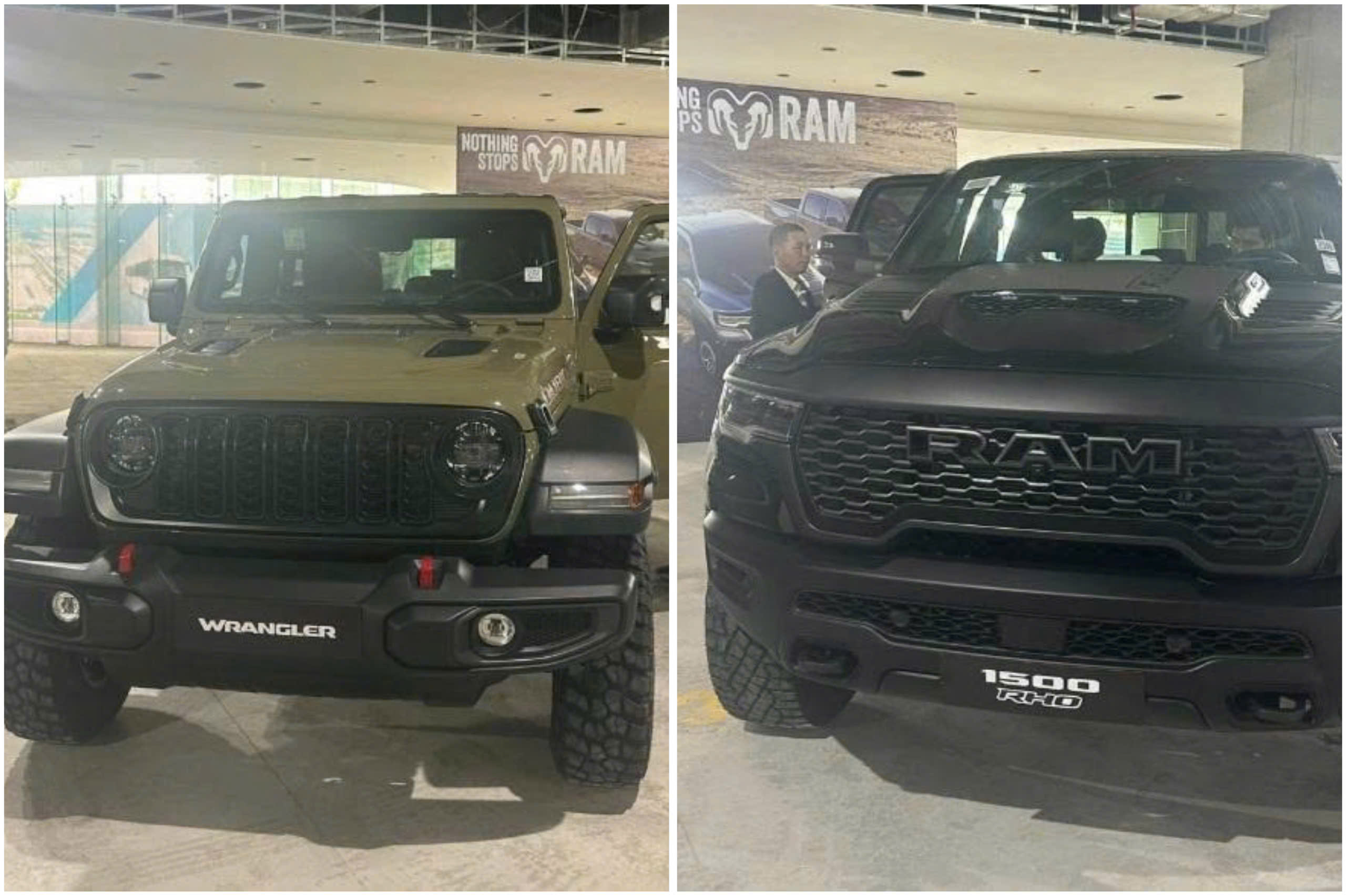 Phía trong sân cũng tập kết một số mẫu bán tải cơ bắp RAM. Trước đó, trong một sự kiện nội bộ của THACO Auto, cặp đôi RAM 1500 RHO, Jeep Wrangler Rubicon cũng bất ngờ hiện diện bên cạnh Kia Tasman và Peugeot 3008, 5008 thế hệ mới khiến nhiều người hoài nghi.