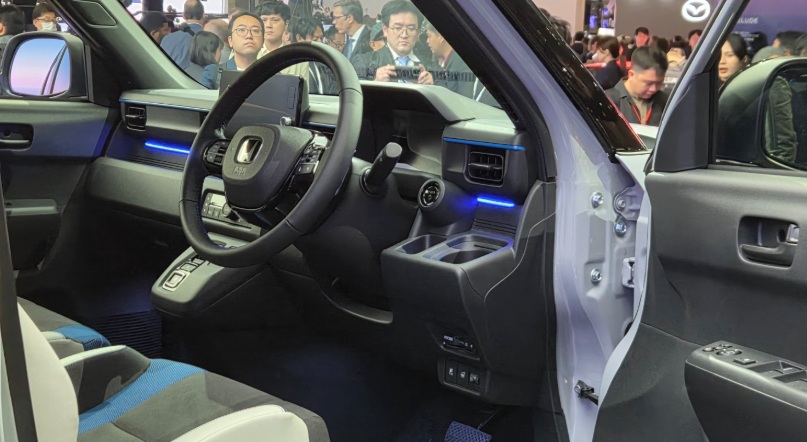 Không gian bên trong Super-ONE Prototype được thiết kế theo phong cách tối giản nhưng đậm chất thể thao, với ghế ngồi ôm lưng bọc vải hai tông màu xanh – đen tương phản, gợi liên tưởng đến nội thất của mẫu Honda Prelude thế hệ mới.