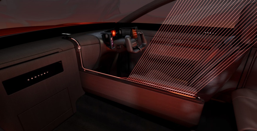 Khoang cabin của Century One of One concept được thiết kế lệch pha độc đáo: ghế hành khách phía sau được lùi nhẹ về phía sau ghế lái, có thể xoay linh hoạt và được ngăn cách bằng rèm riêng tư. Cách sắp xếp này giúp hành khách có trải nghiệm thư giãn và độc lập, đồng thời khẳng định tính cá nhân hóa – yếu tố cốt lõi trong thế giới xe siêu sang.