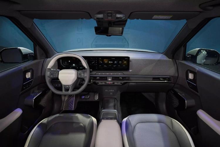 Bước vào khoang cabin, sự thực dụng được đẩy lên tối đa nhưng không thiếu đi tính công nghệ. Kia EV2 sở hữu hệ thống ba màn hình liền mạch bao gồm bảng đồng hồ kỹ thuật số, màn hình giải trí trung tâm và màn hình điều khiển hệ thống điều hòa riêng biệt.