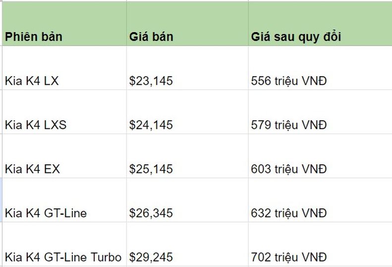Với mức giá khởi điểm chỉ từ 21.990 USD tương đương 556 triệu VNĐ, K4 hiện là một trong những mẫu sedan có giá bán thấp nhất của Kia.