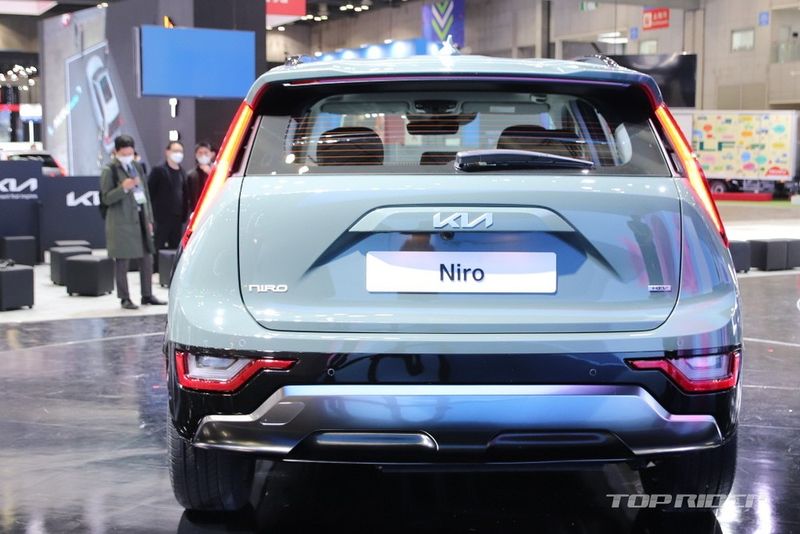 Di chuyển ra phía sau, chiếc SUV nổi bật với cụm đèn hậu LED tạo hình boomerang độc đáo, được tích hợp vào cột C. Thêm vào đó là đèn phản quang hình nhịp tim tương tự như đèn LED định vị ban ngày, cửa cốp sau dập hình thang với logo Kia mới nằm ở vị trí trung tâm. Kia Niro 2022 có cản sau được sơn màu đen bóng, kết hợp tấm ốp gầm giả màu bạc.